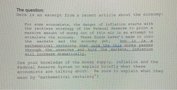 Solved The Question Here Is An Excerpt From A Recent Chegg Com
